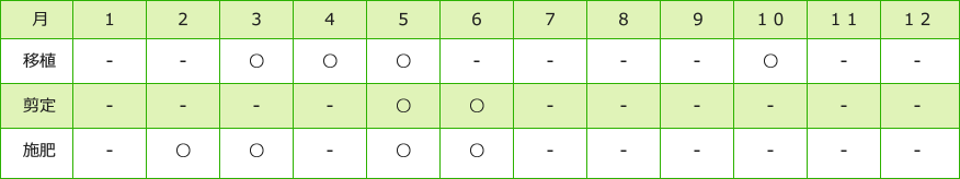 | 用途・役割・特長 | 花の咲く木(赤、紫) 花の咲く木(白)添えになる木 |